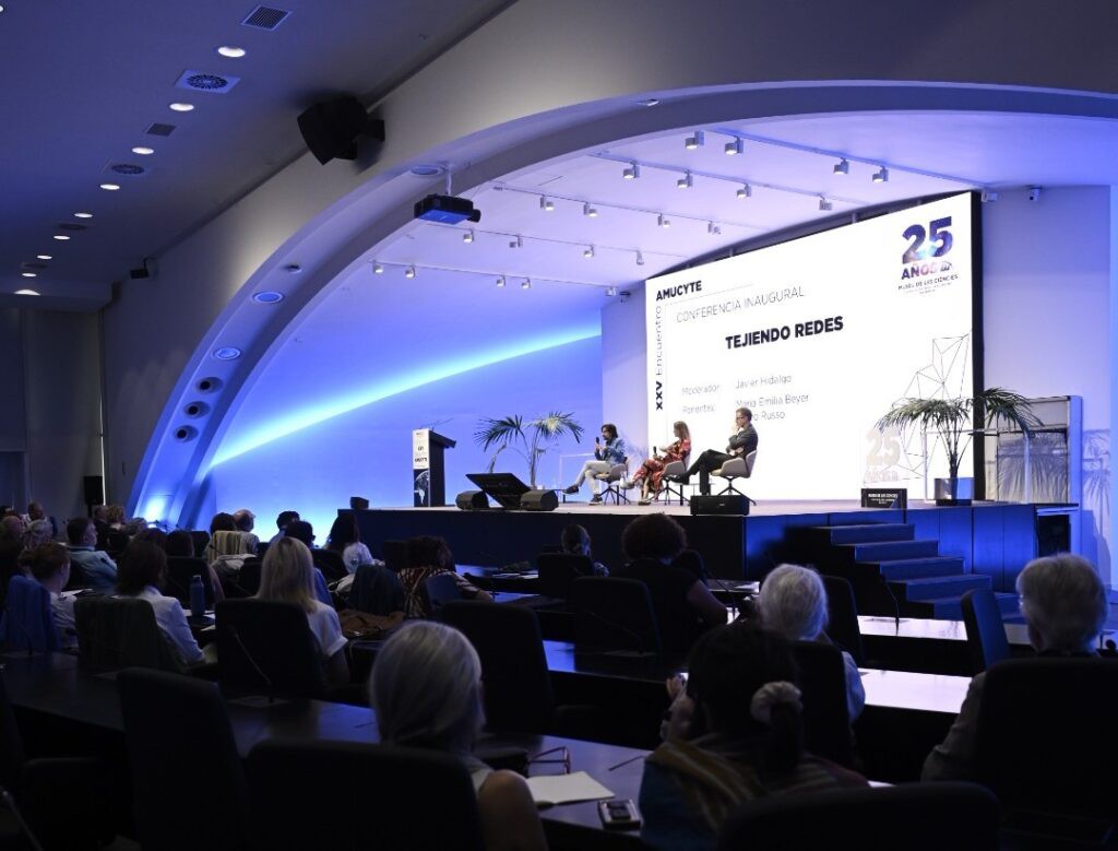 La conferencia inaugural titulada ‘Tejiendo Redes’ abordó los modelos de cooperación entre museos de Portugal, México y España. Este panel contó con la participación de María Emilia Beyer, directora del Universum en Ciudad de México, y Pedro Russo, director de Ciência Viva en Portugal y profesor en la Universidad de Leiden (Países Bajos). La moderación estuvo a cargo de Javier Hidalgo, responsable de Exposiciones y Contenidos Científicos en Fundación “la Caixa” y vicepresidente de AMUCYTE.